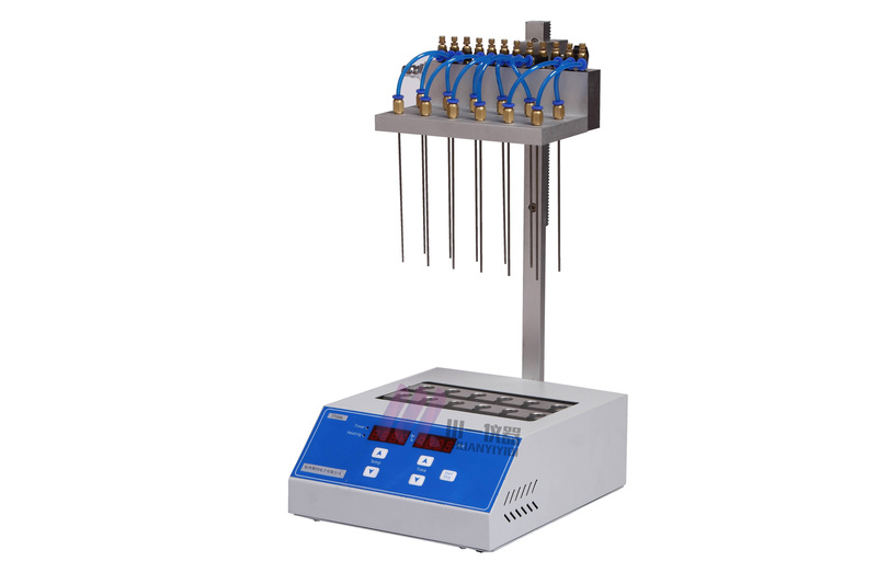 干式氮吹仪主要用于大批量样品的浓缩或制备(如药物筛选、激素分析、液相、及质谱分析中的样品制备)。通过微电脑控制技术,利用高纯铝材料做为加热介质,达到控温更加准确,控温范围广。其工作原理是通过将氮气吹入加热样品的表面,使样品中的溶剂快速蒸发、分离,从而达到样品无氧浓缩的目的,保持样品更纯净。